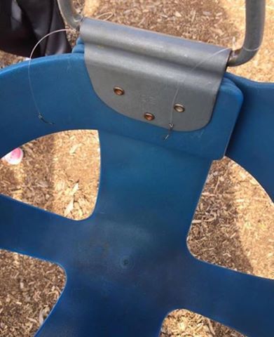 Although the fish hooks are of no immediate threat to the area, Hockenberry cautions parents and guardians to check playground equipment before letting their child play on it.