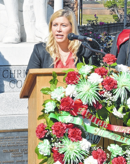 District Magistrate Alexandra Kokura-Kravitz was the Columbus Day guest speaker at the foot of the Columbus statue located at the corners of Kennedy Boulevard and Main Street, Pittston.