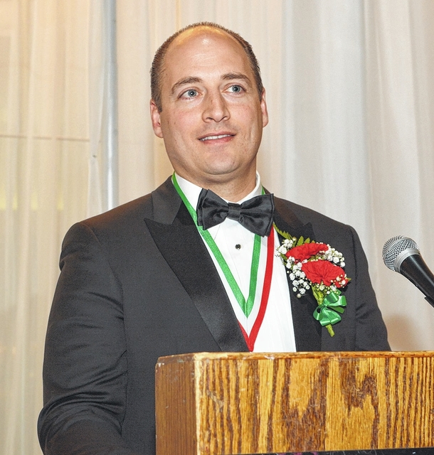 This year’s Person of the Year, Dr. Anthony D. Bruno II, speaks at the Italian-American Association’s Columbus Day banquet.