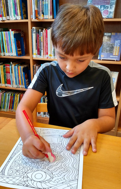 The Adult Coloring Club meets at 1 p.m. each Friday and on scheduled evenings. The library has different themes each week. This event saw a wide range of of participants, including toddlers to teenagers to adults.