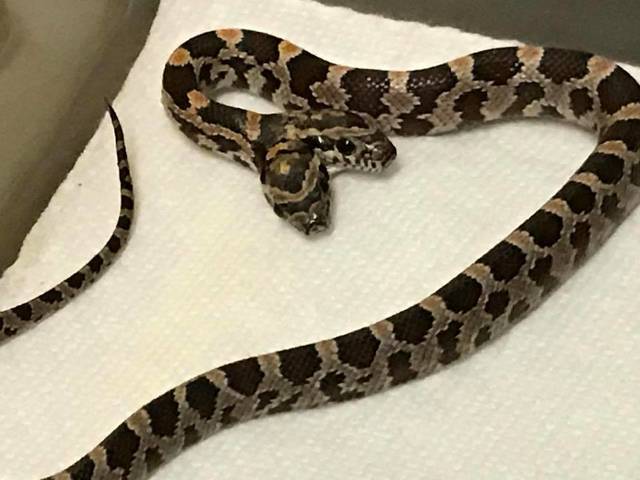 According to Bill Jr., manager of the Pet Zone and a reptile enthusiast, there is a 1 in 100,000 chance of a two-headed snake hatching.