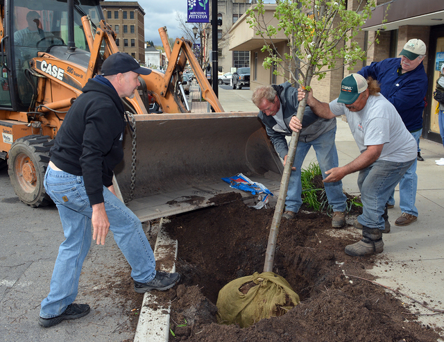 PITTSTON — Members of the Rotary Club of Pittston gathered downtown on Saturday, April 23 to replace a tree that was damaged by a vehicle in recent months.