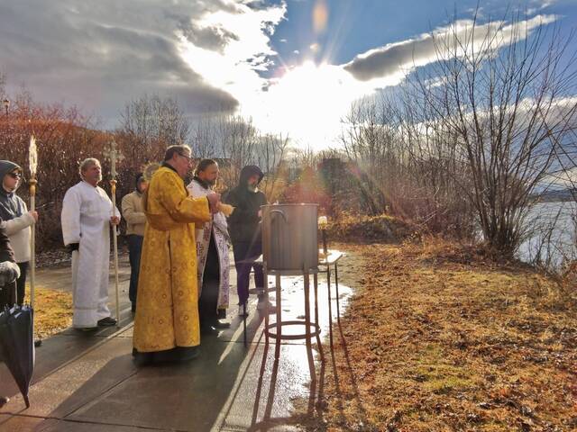 A group of people gathered at Riverfront Park on the banks of the Susquehanna River in Pittston on Sunday, Jan. 11, to keep a tradition, the Great Blessing of the Waters.