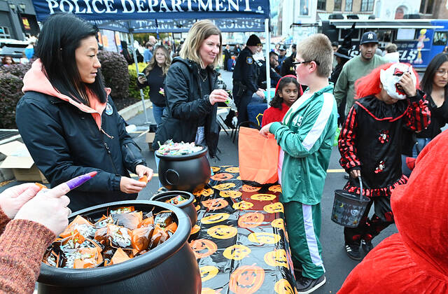 The event was sponsored by the Downtown Pittston Partnership, which also presented a movie at The Slope Amphitheater after the trick-or-treating.