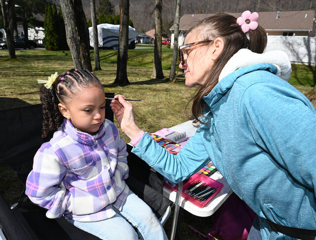 Izel Evans gets her face painted by Heather Danna at Exeter Borough’s Easter Bunny visit hosted by Exeter Events.