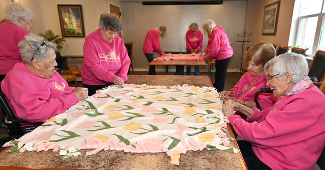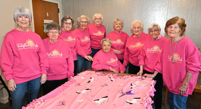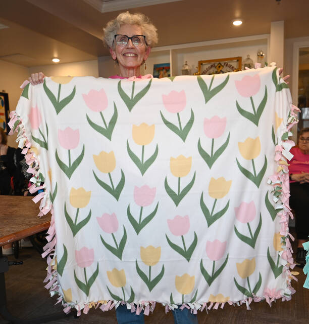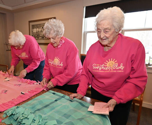 LAFLIN — The Sunshine Club, made up of women in their 80s and 90s, gathers every other week to produce blankets to be given away to those in need each month. Blankets purchased by Wesley Village are then donated to the Department of Veterans Affairs Wilkes-Barre Medical Center, a cancer center, nursing homes, ill children, and people who are lonely, according to Joan Pribula, a resident at Meyer Manor, Wesley Village.