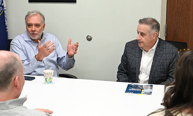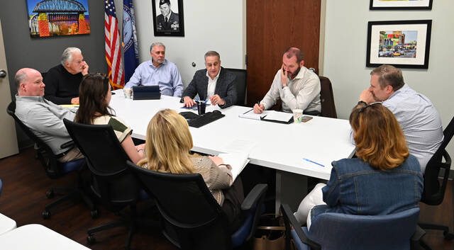 Representatives of the City of Pottsville, along with members of the City of Pittston’s front staff, discuss home rule with the Pottsville representatives.