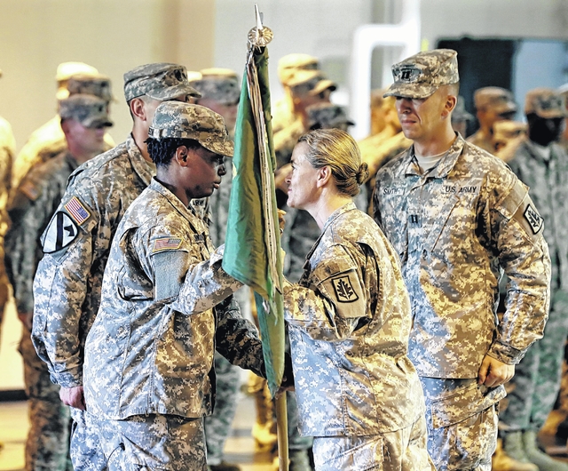 The soldiers’ return preceded a brief change of command ceremony in which outgoing commander Capt. John P. Smith turned the unit over to First Lt. Krystin J. Johnson.