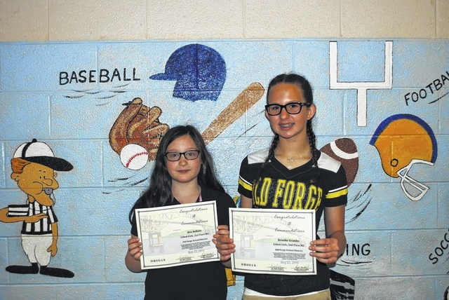 Old Forge School District gifted students Ava Aulisio, left, and Brooke Granko recently competed in the 2016 Northeastern Education Intermediate Unit (NEIU) No. 19’s Engineering Encounters Bridge Contest. The students designed a virtual bridge through the use of engineering design, planning and creation. They competed against other students in Lackawanna County and took second place in the middle school division.