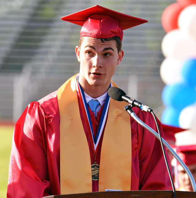 Superintendent Kevin Booth shared the story of the 1980 U.S. hockey team, which beat the Soviet Union in the Olympics. He referred to the 2,300 days of school the students have endured over the pasted decade. He quoted U.S. hockey coach Herb Brooks.