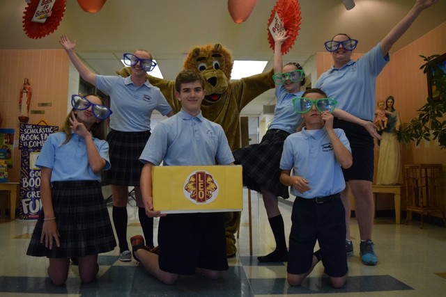Wyoming Area Catholic School and the Pittston Area Leo Club are joining efforts to fight blindness through donations of used prescription glasses. A collection container can be found in the lobby at Wyoming Area Catholic School for parents and students to drop off donations. Acceptable eye-wear include prescription glasses or sunglasses, but eye glass cases are not accepted. For more information contact Mary Ann Paddock-Kaminski at 570-654-7982. Pictured are Wyoming Area Catholic School students, from left, first row, Emma Anderson, Max Gilligan, Chris Hine. Second row, Makaylee Crake, Leonardo, Leo Club mascot; Olivia Pavlico and Chloe Morris.