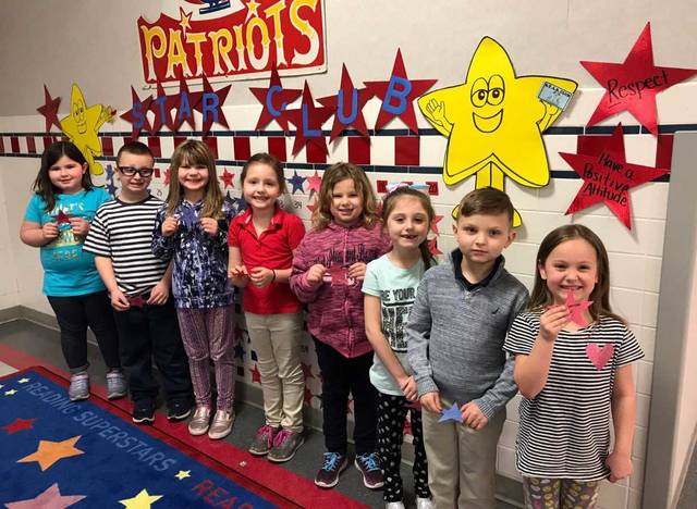 Students at the Pittston Area Martin F. Quinn Primary participated in a Positive Behavioral Intervention and Supports Program called STAR, which promotes and reinforces positive school wide behavior. Students receive “STAR Cards” when exhibiting great behavior choices, and when 10 stars are aligned, they select a prize out of the principal’s treasure chest. Students who recently selected prizes are, from left, Emma Teffers, Rocco Oliveri, Emily Frei, Olivia Lacomis, Autumn Davis, Adrianna Williams, Brently Wall, Alexis Garrison. Absent form photo, Michael Robinson and Kylee Evans.