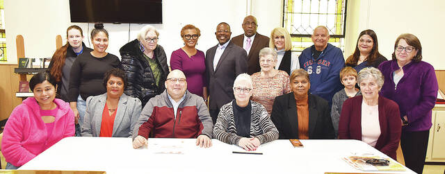 The First Baptist Church, Water St., Pittston, is bringing back the annual Thanksgiving free community take-out dinner only on Tuesday, Nov. 21, from 2 p.m. to 8 p.m. at the chuch. Call in orders are being accepted from Nov. 6 through Nov. 18. Call 570-654-0283. Committee members for the dinner are shown in the photo. Seated, left to right: Zaida Hernandez, Sharleen Watson, Ben Tielle, Cindy Hrobuchak, Sharon Harris, Lois McHugh (Meals on Wheels). Back row: Kim Van Voorhis, Jennifer Sanchez, Henrietta Bevan, First Lady Sherrell Breese, Rev. James H. Breese, Charles Watson, Ruth Tielle, Cindy Kizis, John George, Daniel Ide, Katy Ide, Linda Falzone (Meals On Wheels).