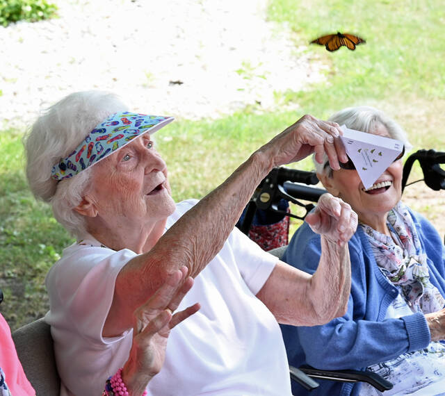 INKERMAN — United Methodist Homes Wesley Village Campus hosted a butterfly release on Thursday, Aug. 8, at Myers Manor. Residents purchased monarch butterflies in honor of loved ones and released them at the courtyard behind Myers Manor.