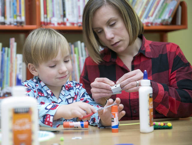 West Pittston Library hosted its annual Holiday Hoopla party on Dec. 19, offering an event that gives children and parents the opportunity to make their own Christmas ornaments, share hot chocolate and enjoy holiday story time — all while wearing their pajamas.