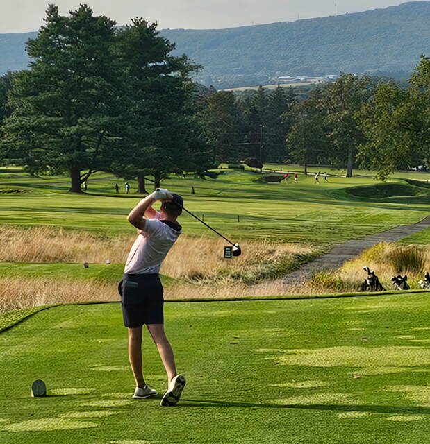 Pittston Area’s Ryan Noone hits a drive down the middle at Valley Country Club in Friday’s win over Hazleton Area.