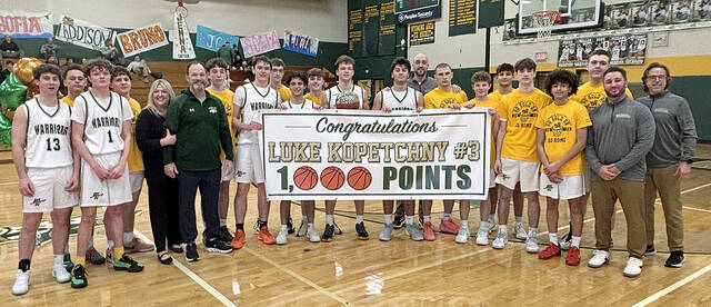 Kopetchny was done for the night with 2:53 left in the third quarter. His scoring totals stood at 22 points on his birthday and 1,004 for his career. The Warriors were well on their way to coming out of the night with sole possession of the Wyoming Valley Conference Division 2 lead.
