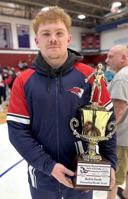 Spindler’s pin of Jaden Reynolds at 1:56 of their 215-pound bout, the last to be contested on the mat, earned him recognition as the Barbrie Family Outstanding Wrestler.
