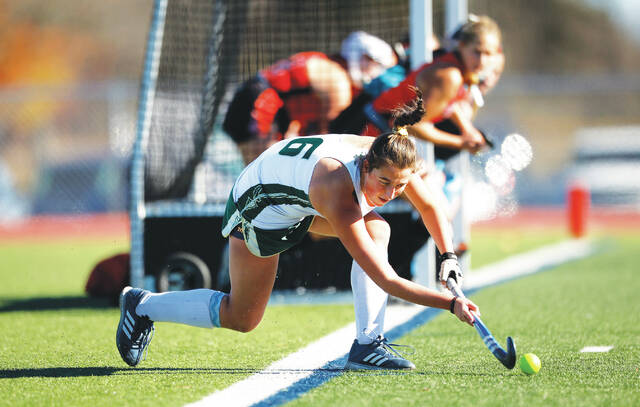 Wyoming Area’s Ella Campenni brings in a corner against Susquanita on Nov. 8, 2024.
