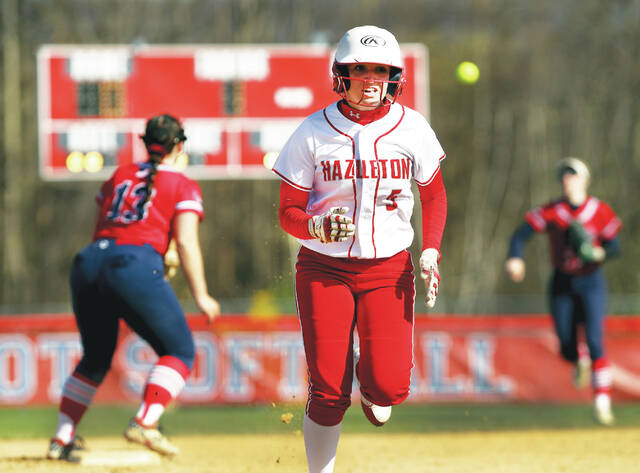 The defense played error-free softball, with Booth turning in the defense gem to end the sixth. Hazleton Area’s Kelsie Peters smoked a liner over Booth’s head, but she was able to run toward the fence and spear it while battling the sun.