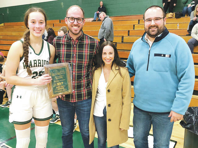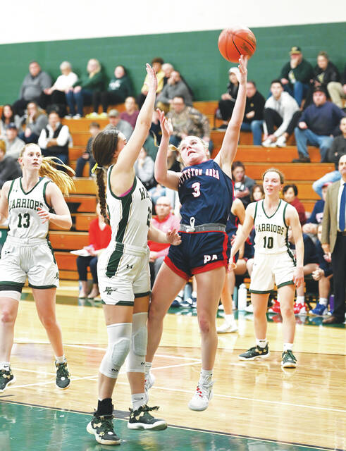 The Lady Patriots needed a blocked shot and a tie up for a held ball with the arrow advantage by Ava Callahan and a steal by Ranieli in the last 1:10 to limit Wyoming Area’s late shots.