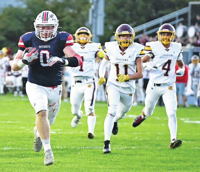 Pittston Area senior Brody Spindler (0) breaks away for a touchdown against Wyoming Valley West this past season. Spindler was among five Wyoming Valley Conference players to receive all-state honors from the Pennsylvania Football News on Tuesday.