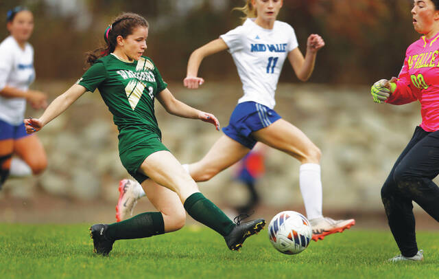Until Musinski finally scored, third-seeded Mid Valley (15-5) had eight shots and two corner kicks through the first 20 minutes of the second half. The Spartans weren’t shy about ripping liners at the goal from outside the 18-yard line and ended up outshooting Wyoming Area 23-4.