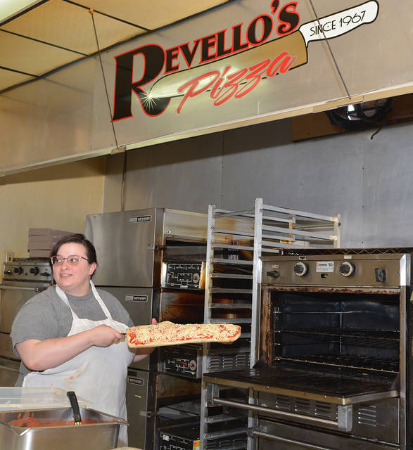 OLD FORGE — Since 1967, Revello’s has placed its takeout pizza in department store garment boxes.